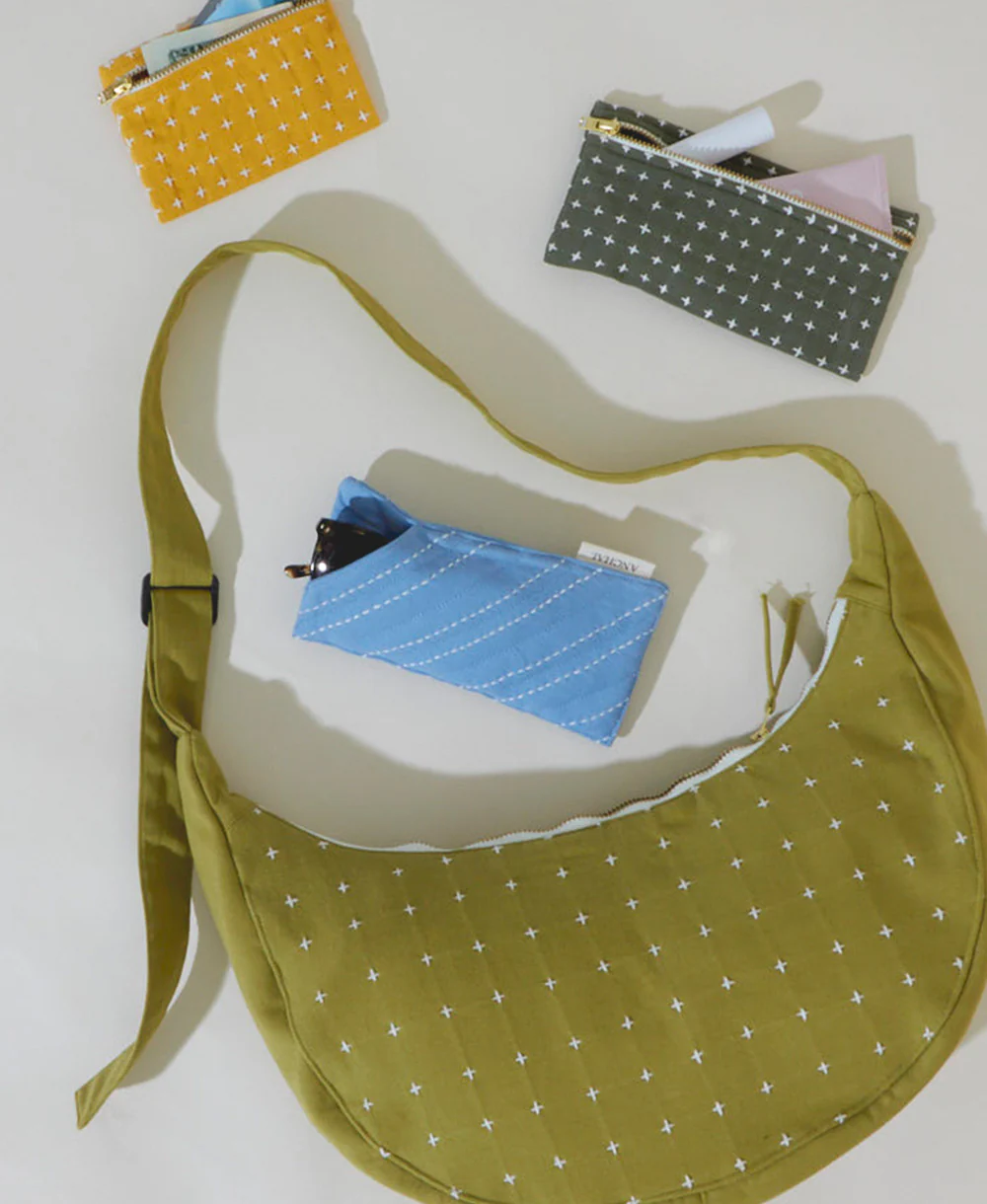 Say hello to the Cross-Stitch Crescent Bag, a soft statement piece with just the right amount of detail. Crafted from organic cotton, this easy, curved silhouette is brought to life with rows of delicate cross-stitching that add texture, depth, and a hint of hand-touched charm.